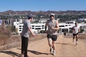 视频中,张镇麟接受刘翔昔日对手、美国110米栏名将多米尼克-阿诺德训练,并进行跑山训练。