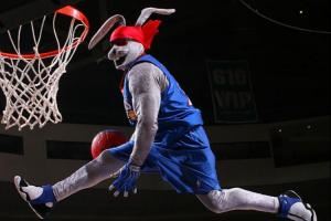 据了解,“嘻哈”是76人从1998年1月15日至2011年11月22日的吉祥物,是一个兔子形象的角色,通常会在比赛间歇时表演蹦床杂技扣篮,他还有一个小助手“小嘻哈”。“嘻哈”的扮演者比尔-罗特是前美国男子艺术体操国家队成员,曾在1995年泛美运动会上获得1金2银,“小嘻哈”则由他的女儿扮演。