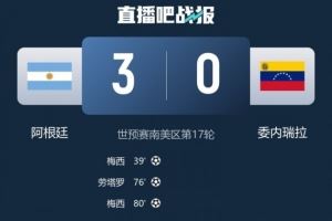 体育资讯9月5日讯 世预赛南美区第17轮,阿根廷主场3-0击败委内瑞拉。赛后阿根廷媒体Tyc为阿根廷队进行评分,其中梅西9分最高,阿尔马达8分其次。
